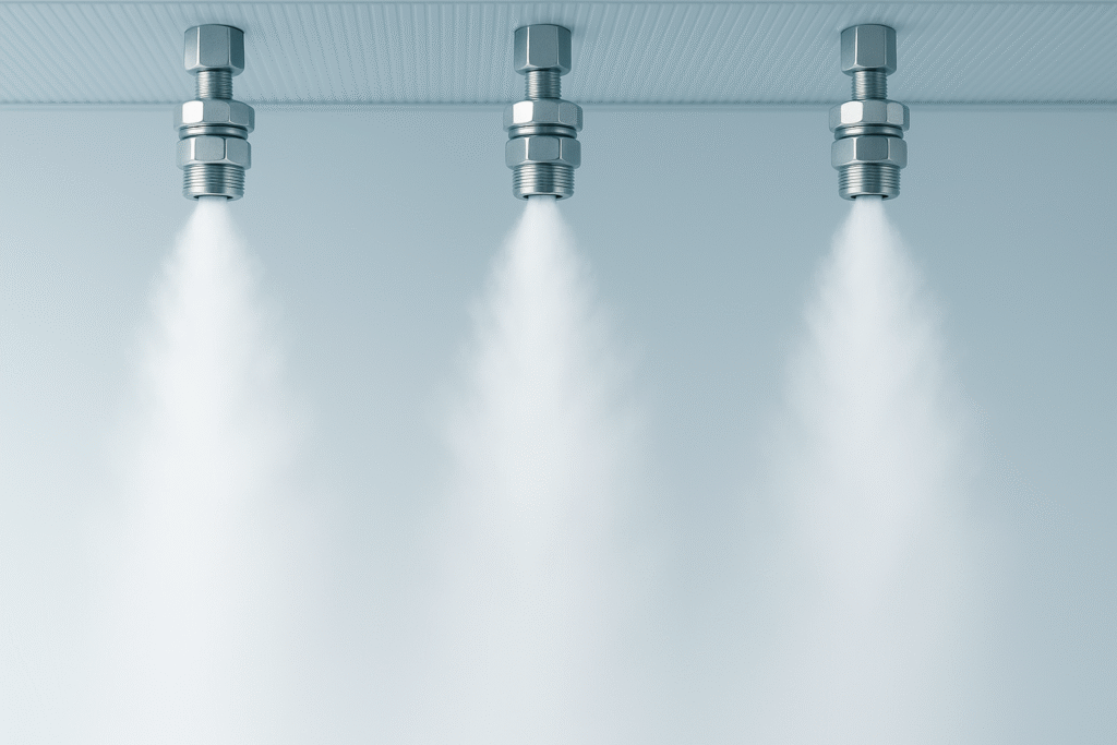 A water mist system uses extremely fine droplets—smaller than 1,000 microns—to control, suppress, or extinguish fires. Unlike traditional sprinklers, it releases a mist under high or low pressure that rapidly absorbs heat, cools flames, and displaces oxygen around the fire.