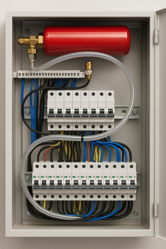 For car engines, the system delivers suppression inside the engine compartment. For racks, it protects concentrated equipment and cabling, while for electrical cabinets, it prevents fire from spreading within enclosed panels.