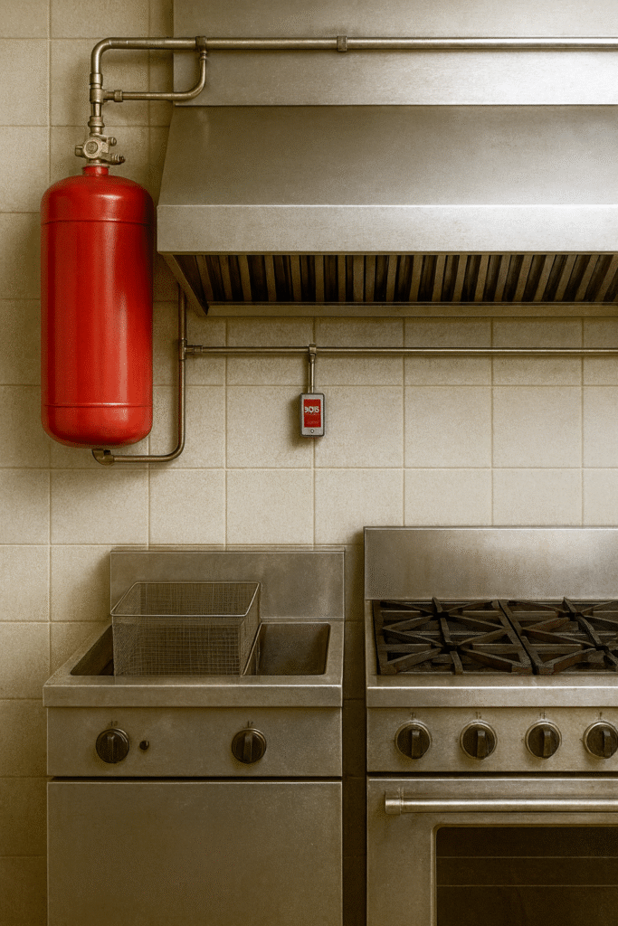Through a chemical reaction called saponification, the agent forms a protective soapy layer that cools surfaces and prevents re-ignition. Compact, fast-acting, and dependable, these systems are essential for restaurants, hotels, and industrial kitchens—providing superior protection where traditional sprinklers may fail.